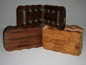 Spil Kalaha spil til at lukke sammen i eg, valnød, mahogni & kirsebær Kalaha spil i eg, valnød, mahogni & kirsebær