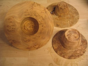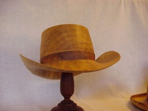 Hatte Dette er en Høj Hat drejet i egetræ. Høj Hat i egetræ Cowboyhat i egetræ Bowler i birketræ Hat i Bøgetræ Mini hatte i elmeknude Høj Hat i elmeknude Drejning af hat